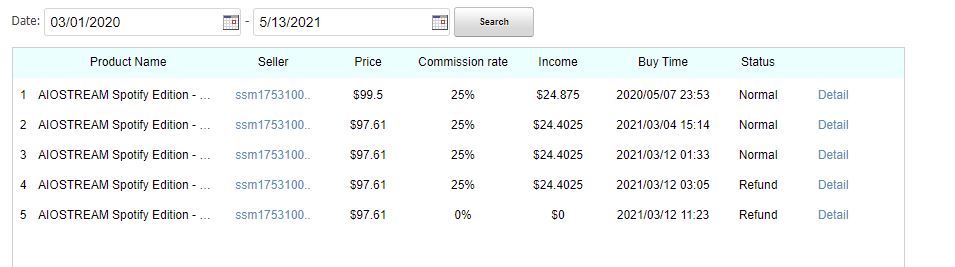 Hello. Please check. I have 3 sales of aiostream copies from 05/2020 to 04/2021. But still have no commission.