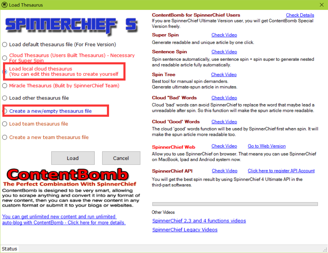 When you start to run the program, program will ask you to load the thesaurus, then you can select load your own theasaurus.