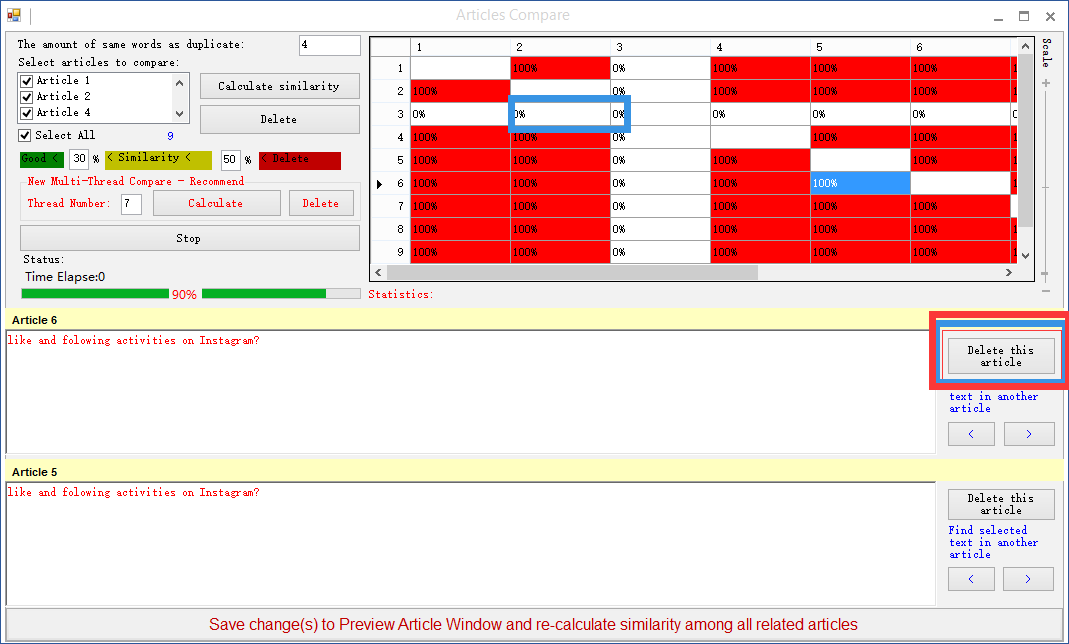 I want to delete specific articles, but there are two delete buttons at the top list and I have no idea how they work. I tried to select only the articles I wanted to delete, but it deleted everything but two articles.