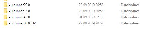 -Please go to check if these files (xulrunner29.0, xulrunner33.0, xulrunner45.0, xulrunner60.0 ) are in this path: C:\Program Files (x86) If they are not here, please go to download these files, then unzip them, then move them to this path.