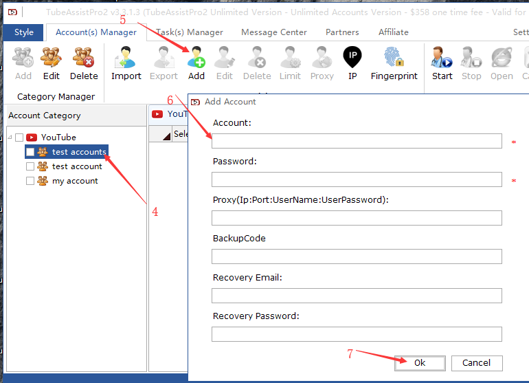 So I've added an account, but don’t see where to add a URL. I also keep getting an error every time I try to start the bot.