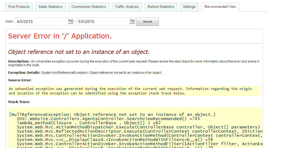 I get the below error when i click page 2 to check. pl resolve this.