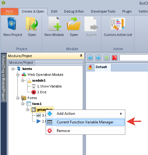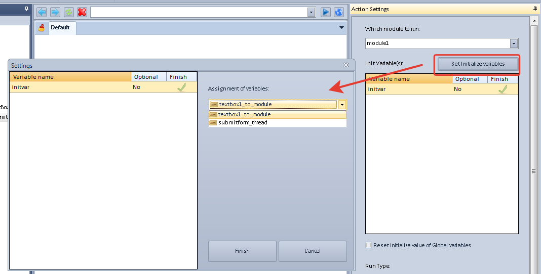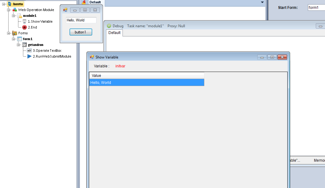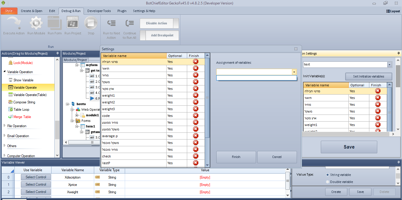 I finished the module and now trying to build the form, the problem is that in the form the user will be ask to enter 3 values in text boxes and I didn't understand how to connect the form variable to module variables so the bot could use this variable (connecting to the module).