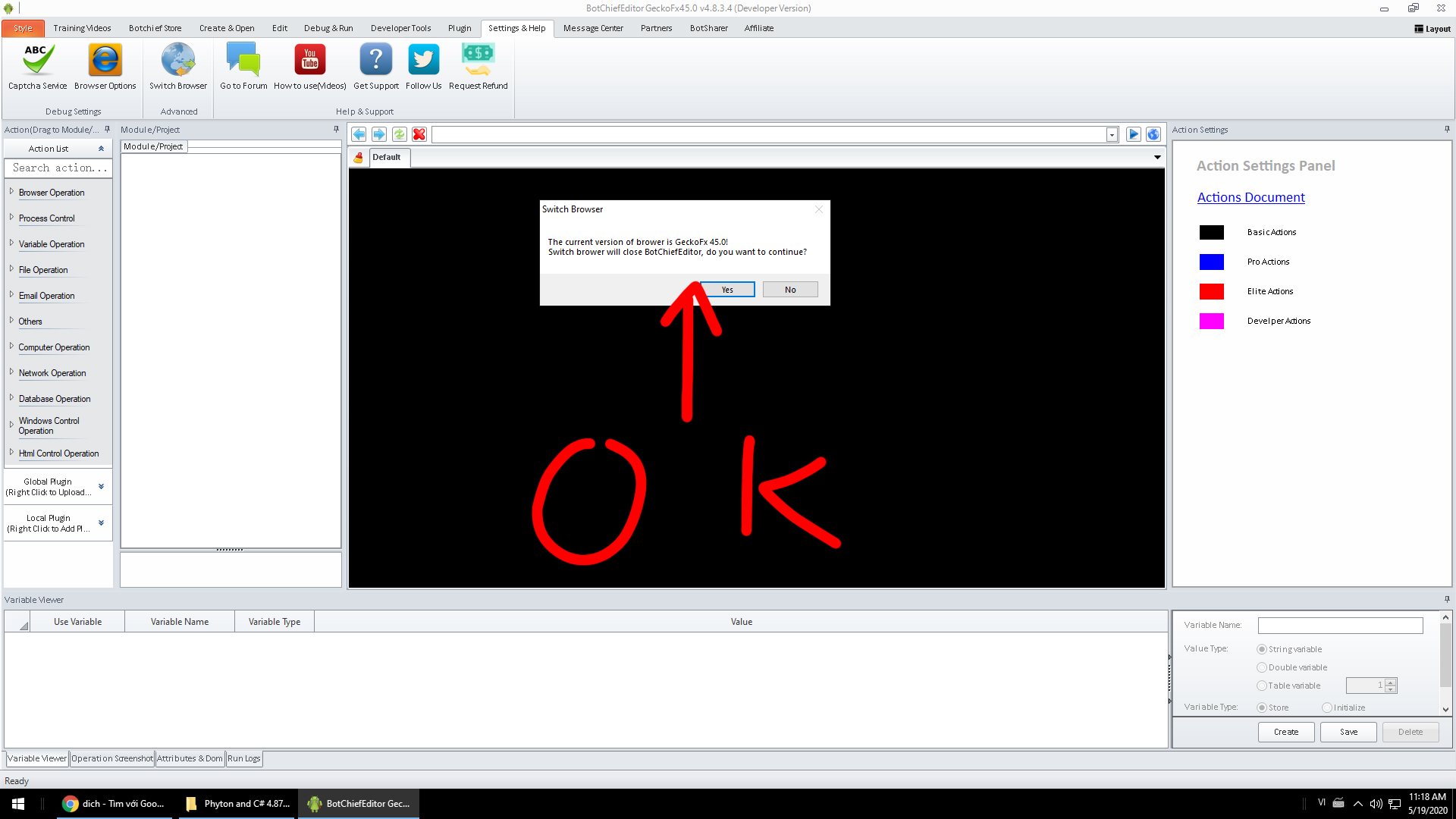 When I update to version 4.8.3.4 -> Botchief can run with Gexko FX.