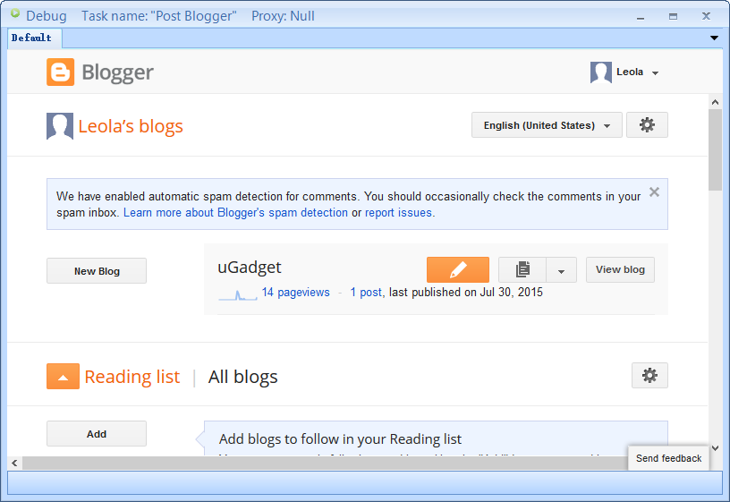 The contentbomb can't submit post to Blogger, I recheck the setting value and article format but get the same result. I think the problem is the google authentication process, as in the log.