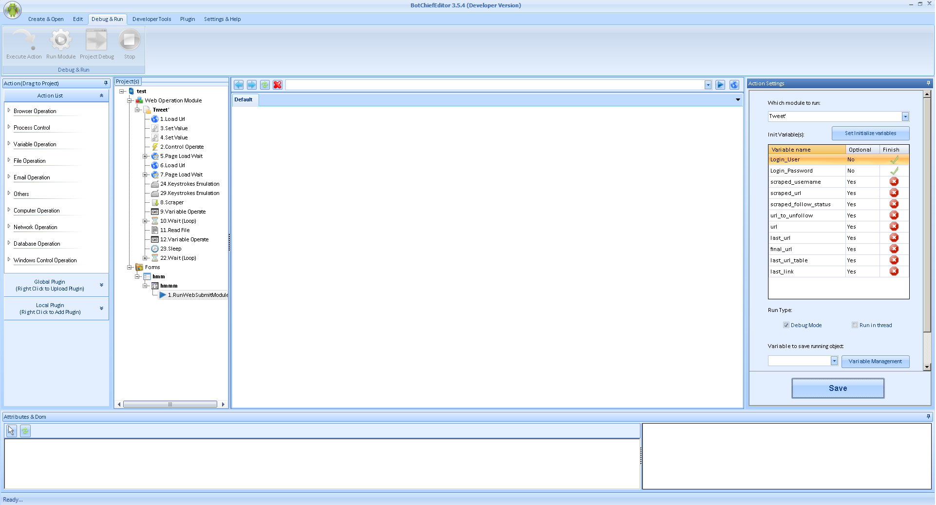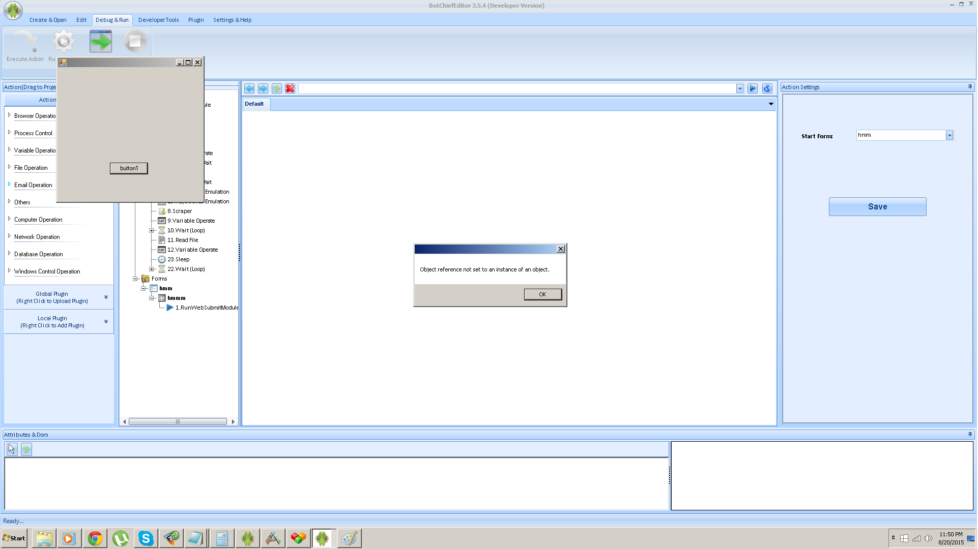 When I link a button and try to debug the form with a module I get "Object refference not set to an instance of an object"