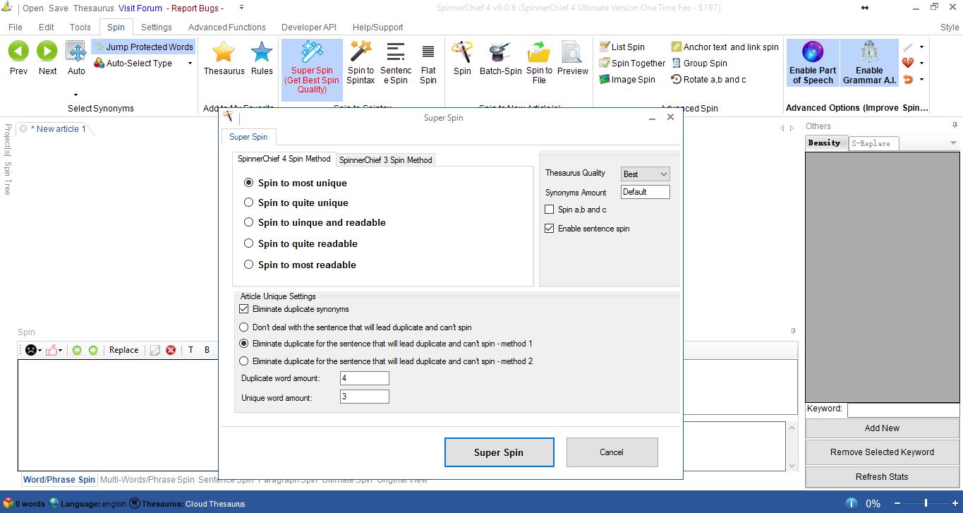 1) Spinnerchief is spinning the protect words. Snapshot 1 is attached.