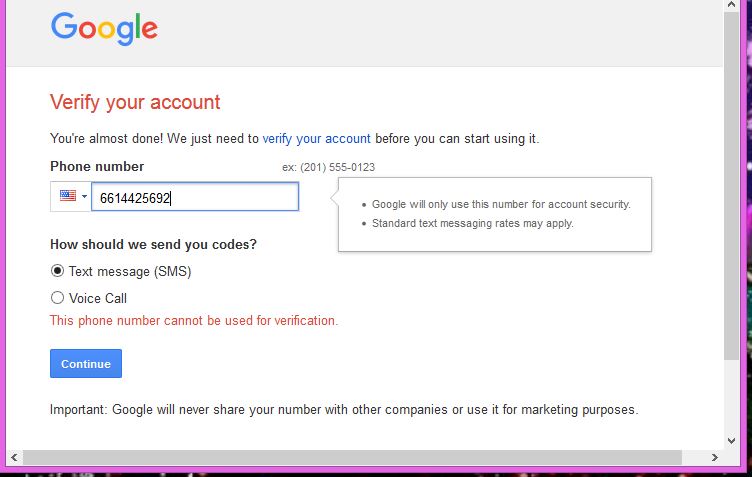 As you see, I am able to successfully get the phone number, but they tell me "This number cannot be used for verification."
