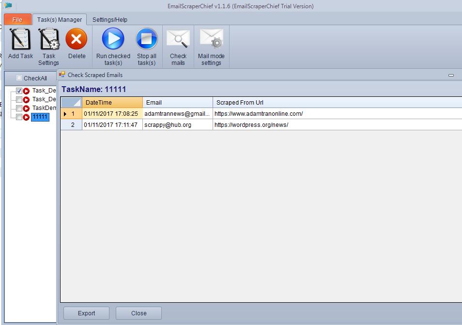 I want to paste in a large number of domains and have it export with domain name/email in csv, txt etc