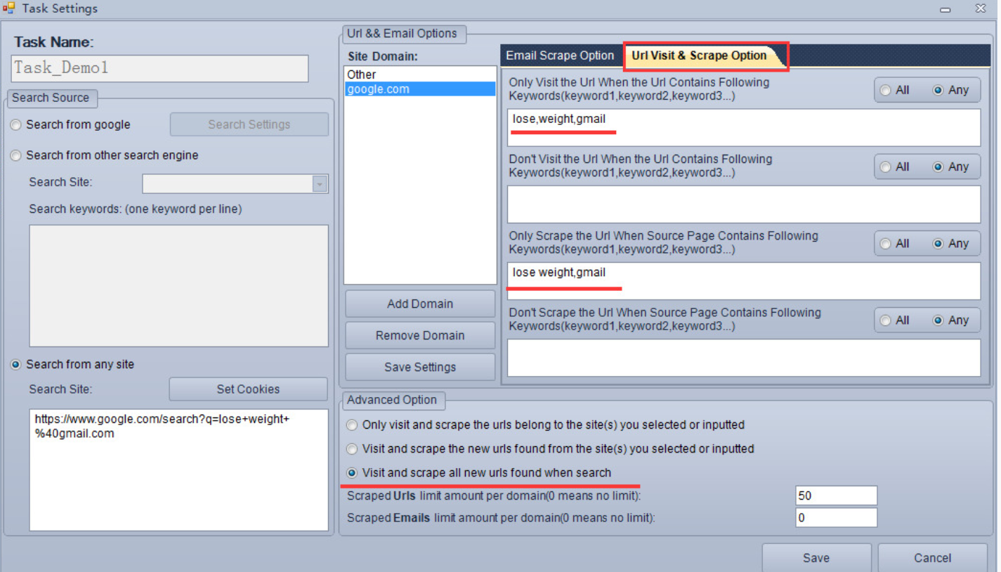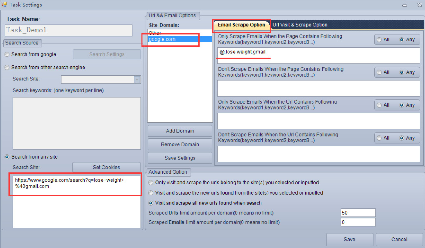 I type in keyword i want to use for email scrape for example sheffield @gmail.com