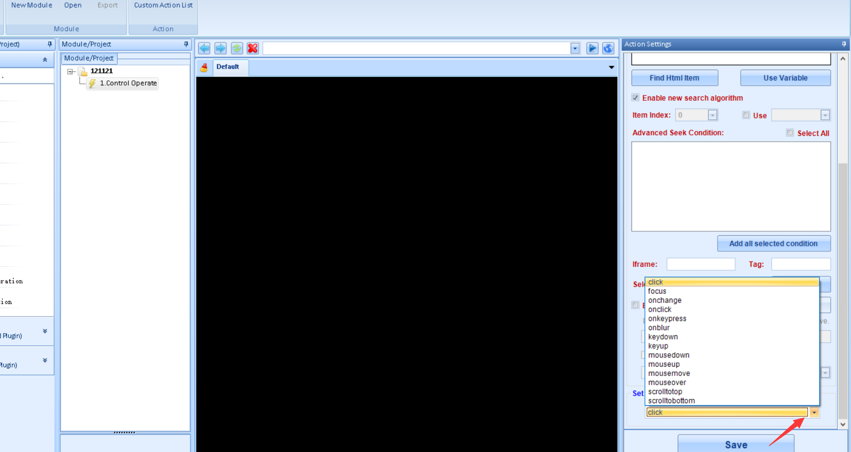 In Control Operate command settings. You can choose these in Event.