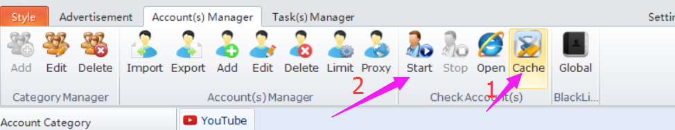 Is there a window showing up when you click Start button to check your account?