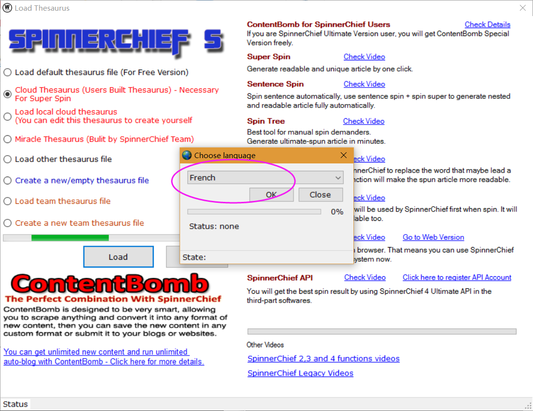 I want to know if Spinner Chief can be used for french and I didn't found any contact infos.