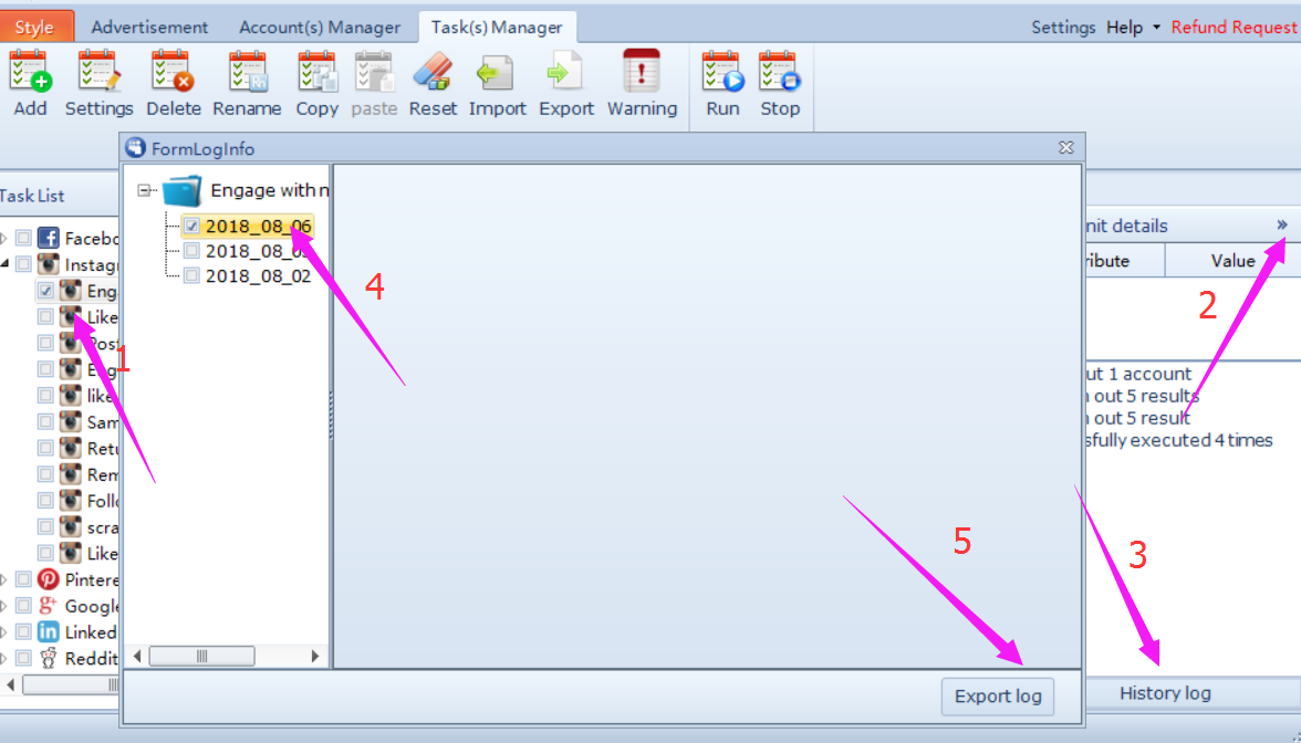 Follow this screenshot to know how to export the task: