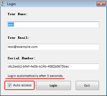 Previously, in compiled modules with a built-in licensed system, it was necessary to authorize each time it was run. Now users can check the Auto access checkbox at startup to log in automatically.