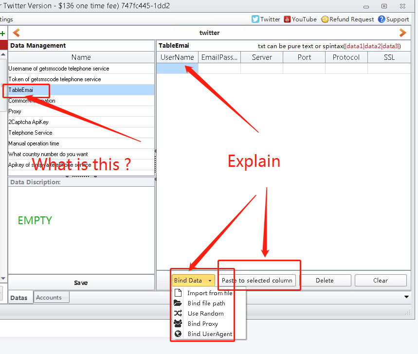 Yes "TableEmai" filed is to ask you enter your email account login information, then software can auto access to this email account, and auto get the verification link to verify the account. Please enter your email address in UserName column.