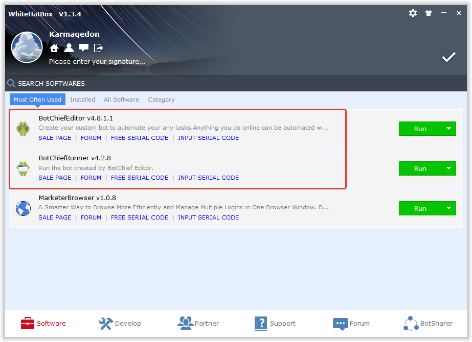 Hi everyone, I got this 3 day trial Developer version of BotChief editor, but when I installed it via WhiteHatBox - it says it is "BotChiefRunner" not "BotChief Editor" and it has no "Editor" tab there - I have only two tabs "Start" and "Help & Support" - but all video tutorials on youtube show how to use "Edit" Tab and it shows how there is a lot ore tabs - maybe in previous version? could someone tell me please - where all the editing ability is there? or is it locked and unavailable because I am on 3 day trial there - I paid $7 for 3 day trial.