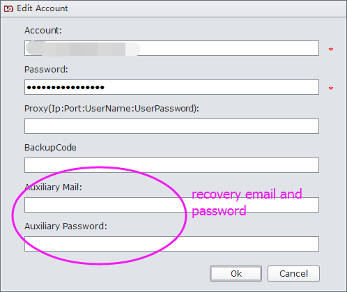 Enter your recovery email and password to following filed, then software will auto verify it during login if needed.