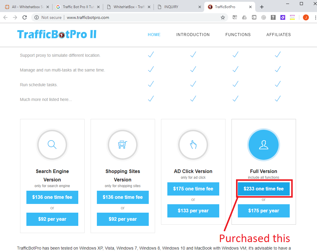 it says my "supporter" is "Lily Brown" but I have not gotten any replies since yesterday morning. When I purchased the program I was under the impression I was purchasing version 2 as I got the 55% discount for Traffic Bot Pro v2. And even on the main website www.trafficbotpro.com it clearly advertises for version 2. Then down at the bottom of the page there is no way to differentiate version 1 from 2 so I naturally assumed purchasing the full version using the version 2 discount code would get me version 2. What I would like is the version 2 that I paid for otherwise if you can't do that I would like a refund please. I also uploaded 4 screenshots in the ticket. As you can see from the screenshots below, the majority of the main page even advertises for version 2. The Traffic Bot Pro Version 2 is the one that I was purchasing, not version 1. So im not sure if it was a mistake on the web page or false advertising. I would simply be happy if I could get the correct version, otherwise please refund me if you won't do that. If someone would please take a look at my ticket I would greatly appreciate it. I have also emailed [email protected] as well as [email protected] about this problem. Waiting for a response, thank you.