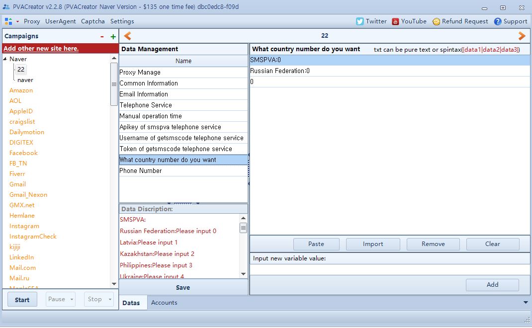 Do I have to type 'SMSPVA:0'? Or should I type 'Russian Federation:0'?