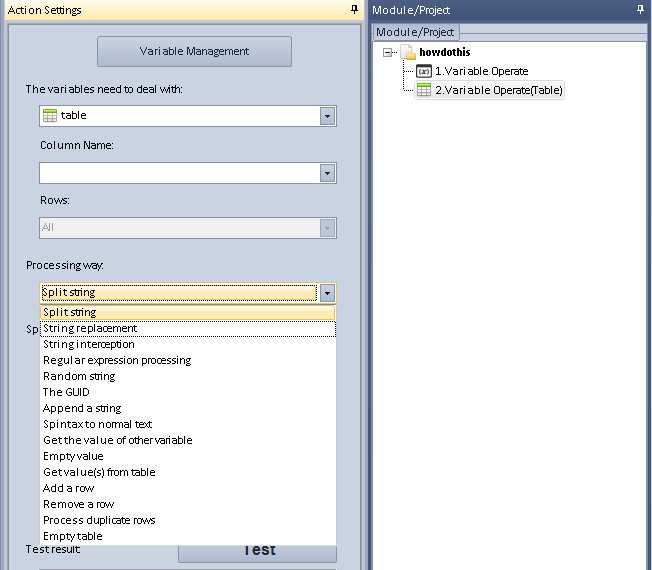1. Use Variable Operate - Get value(s) from table with deleting a row from a table.