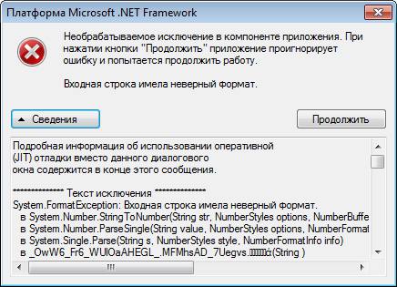 System.FormatException: Cadeia de caracteres de entrada com formato incorrecto.